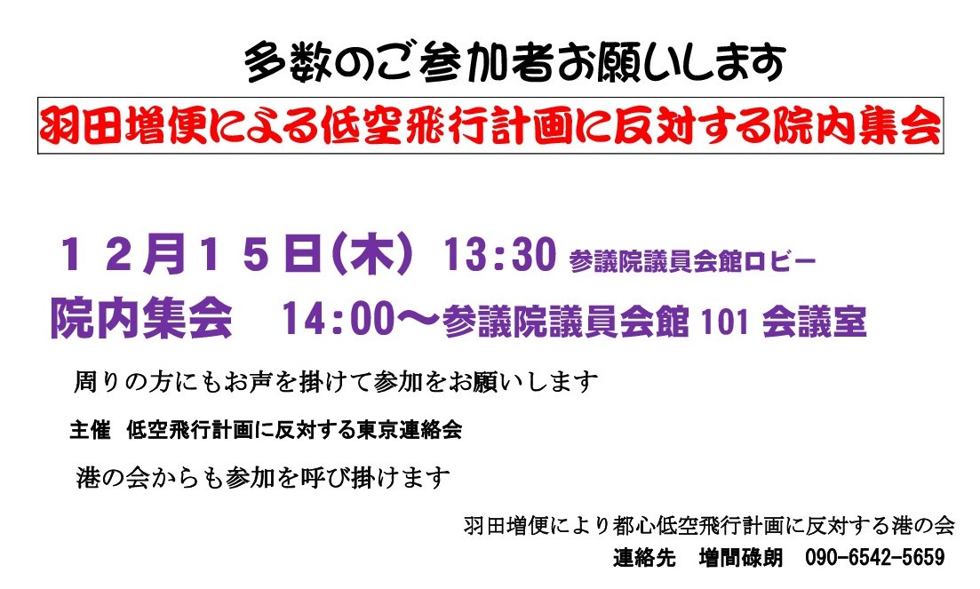 12月15日(木) 13:30 参議院議員会館ロビー